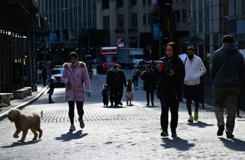 | Des passants devant le New York Stock Exchange (NYSE) à Manhattan (New York), le 16 novembre. |