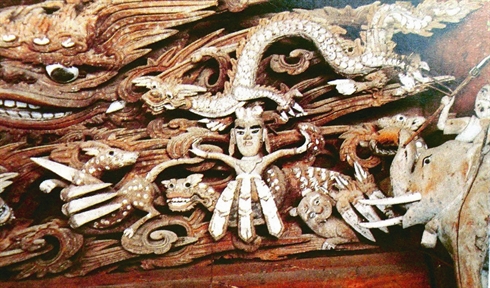 | Fée et dragon, bas-relief au temple de Ha Hiêp (Hanoi) |
