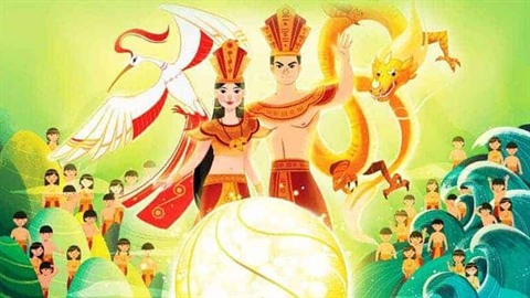 Il y a très longtemps vivait au Pays de Linh Nam (Sud de la Chaîne limitrophe = l’ancien Vietnam) un roi magicien, Kinh Duong Vuong, qui marchait aussi bien sur les eaux que sur la terre ferme. Au cours d’une promenade sur un lac, il rencontra Long Nu (la Fille Dragon), enfant de Long Vuong (le Roi Dragon), qu’il épousa. De leur union naquit un héros herculéen qui devait monter sur le trône sous le nom de Lac Long Quân (Dragon, Roi du Pays des tribus Viêt appelées Lac).