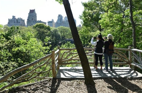 | Des visiteurs de Central Park, à New York, en 2016. |