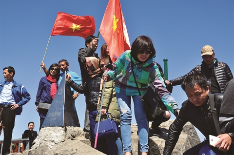 | Des touristes se bousculent pour immortaliser en photo leur arrivée au sommet. Photo : Hông Ninh/VNA/CVN |