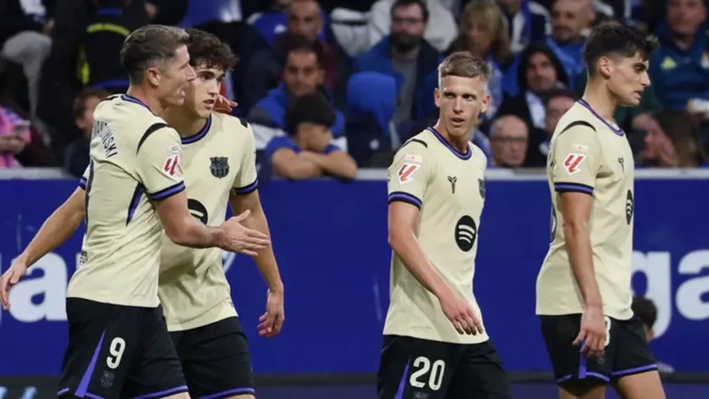 L'attaquant polonais, à peine entré en jeu (70e, 2-1) et le défenseur uruguayen (89e, 3-1), tous deux buteurs de la tête, ont arraché une victoire dans la douleur pour le Barça (2e, 16 points), qui reste au contact de son éternel rival, le Real Madrid (1er, 18 points), leader toujours invaincu.