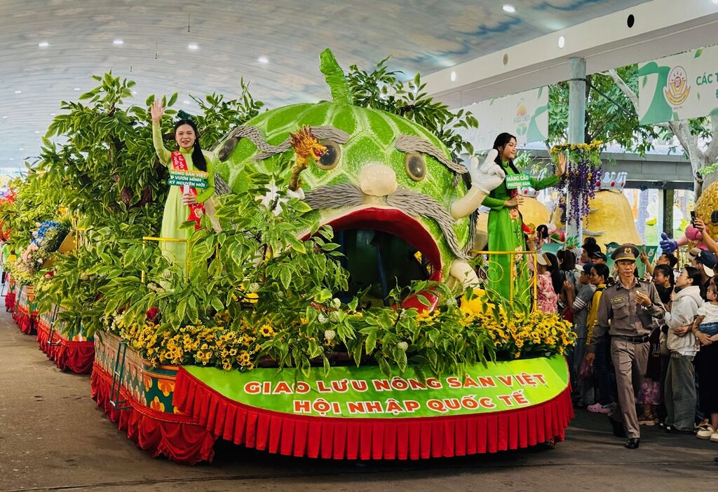 | Défilé de présentation des spécialités fruitières vietnamiennes attire un grand nombre de visiteurs. |