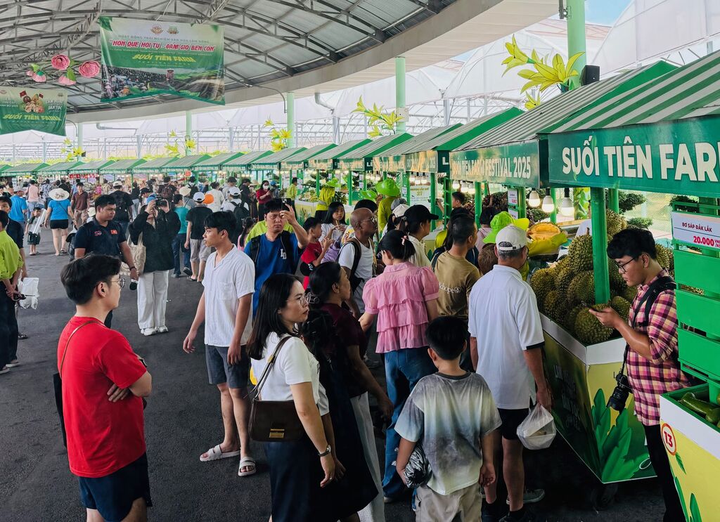 Le marché aux fruits spéciaux raviva également les visiteurs, en rassemblant et exposant des centaines de fruits célèbres du début de la saison, tels que les pêches de Sa Pa, les prunes de Hanoï, les mangues de Cat Hoà Lôc, les mangoustans de Lai Thiêu ainsi que de nombreux produits OCOP de qualité. À cette occasion, les visiteurs auront également la possibilité de visiter la ferme agricole de haute technologie de Suôi Tiên, d’observer une récolte en direct et de déguster des fruits frais sur place.