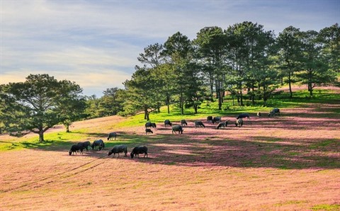 Jusqu'au 2 décembre, des espaces romantiques sont mis en place sur la colline d'herbes roses au pied de la montagne Lang Biang, afin que les touristes puissent s'y rendre. Il y a aussi des stands présentant des produits typiques de Dà Lat et une exposition de photos sur le thème "Lang Biang quand le printemps arrive".