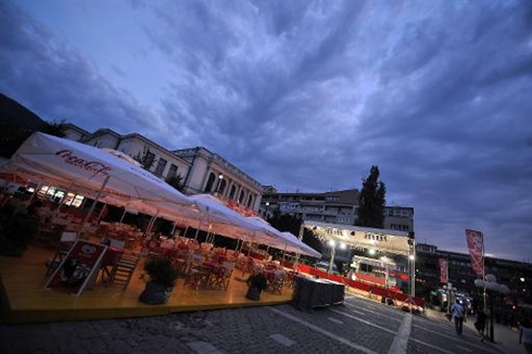| Le 15 août, la place principale du Festival de Sarajevo à la veille de la cérémonie d'ouverture de sa 20e édition |