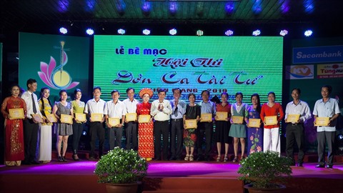 | Des primés lors du Festival du Don ca tài tu 2019 de la province de Kiên Giang. |