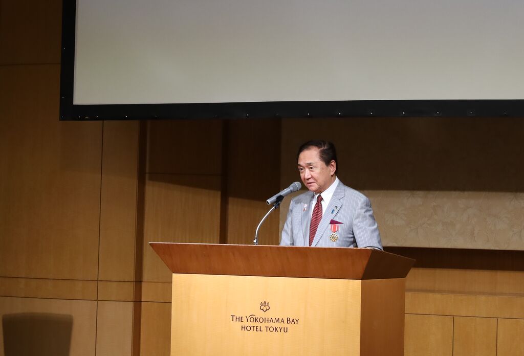| Le gouverneur Yuji s'exprime lors de l'ouverture du Festival du Vietnam dans la préfecture de Kanagawa. |
