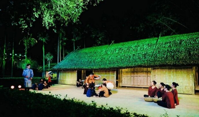 | Un spectacle avec des chansons louant les contributions du Président Hô Chi Minh a eu lieu dans le cadre du festival du village de Sen (Lotus) 2024. |