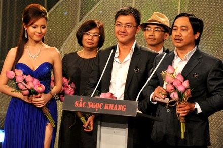 | L'équipe de Thiên mênh anh hùng, lors de la cérémonie de remise des prix du cinéma du Vietnam 2012, le 9 mars à Hô Chi Minh-Ville |