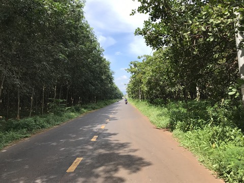 La route est très satisfaisante autant pour les deux roues que les quatre roues. À une trentaine de kilomètres des plantations d’hévéas, vous arriverez au district de Câm My, direction le fleuve Ray. Se succèderont après les hévéas, des plantations de poivriers ou encore d’anacardiers avant d’arriver au bord du fleuve, au croisement de l’eau,du ciel et de la terre.