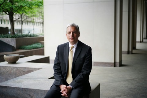 | Alfred Kammer, Directeur du département Europe du Fonds monétaire international (FMI), devant le siège à Washington DC, le 14 avril 2021. |