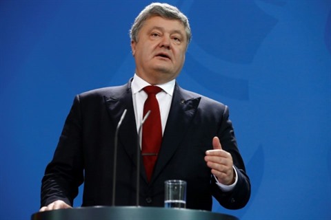 | Le président ukrainien Petro Porochenko, lors d'une conférence de presse à Berlin le 30 janvier. |