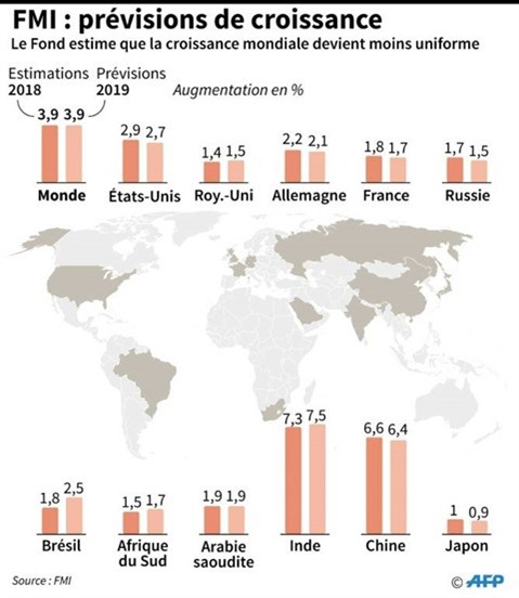 Le FMI relève que les participants au marché financier mondial "semblent complaisants" face aux risques potentiels qui pourraient découler d'un environnement financier soudainement plus compliqué, en cas par exemple de hausse des taux d'intérêts ou d'un accès restreint aux capitaux.