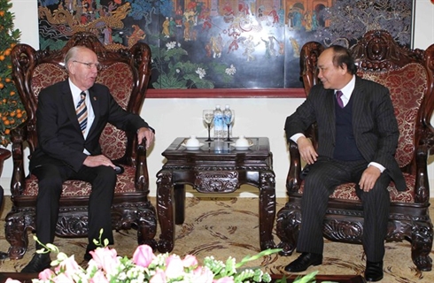 | Le vice-Premier ministre Nguyên Xuân Phuc (droite) rencontre le président du fonds allemand Batschka, Rudolf Walther, le 10 février à Hanoi. |