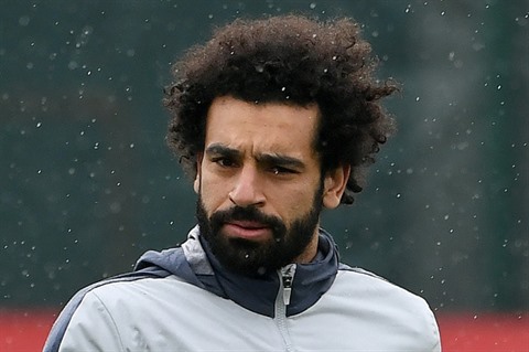 | Le milieu de terrain égyptien Mohamed Salah pendant un entraînement à Liverpool, le 16 avril. |