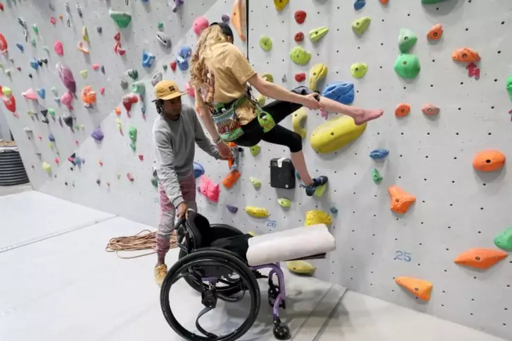 "La première fois que j'ai grimpé, j'ai dit :+je me sens en vie+", raconte la jeune fille en fauteuil roulant. Sportive depuis son plus jeune âge, elle a subi à 15 ans un accident de gymnastique la laissant avec des lésions nerveuses au niveau de la jambe droite.