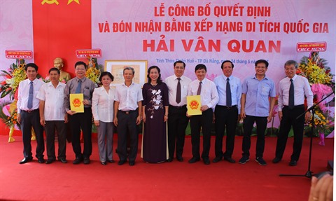| Cérémonie de réception du certificat reconnaissant le fortin du col de Hai Vân en tant que vestige national, le 24 mai au col de Hai Vân. |