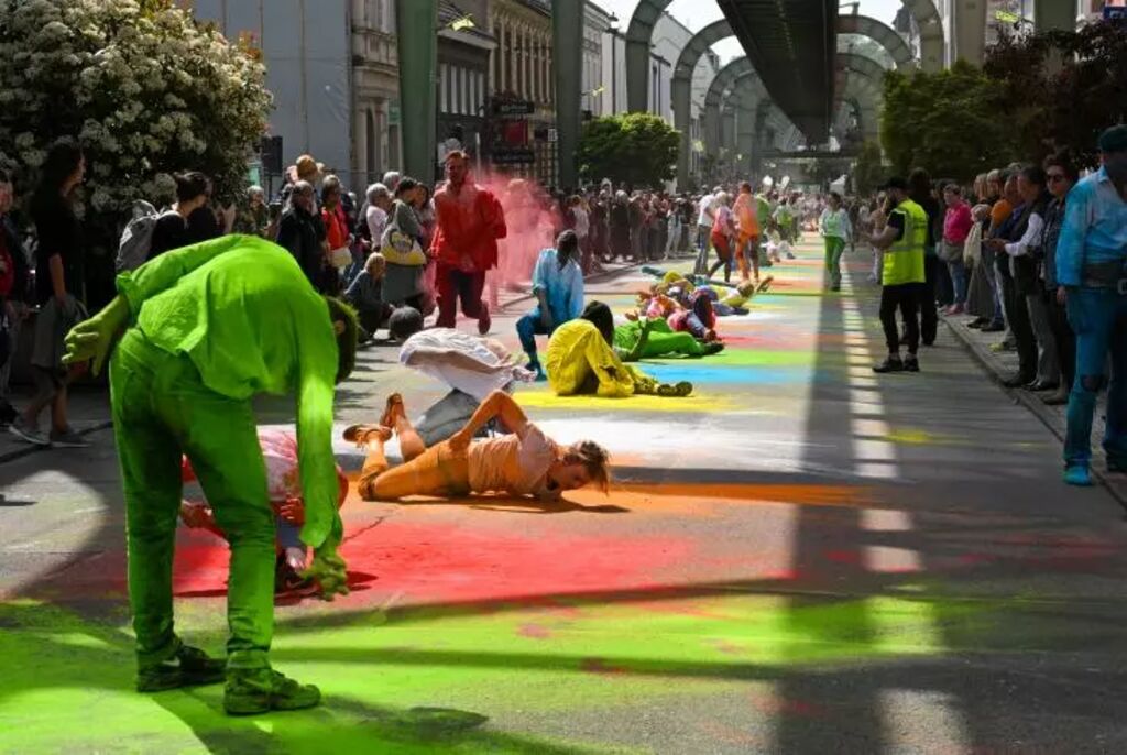 Pour illustrer "manifestation", l'un d'entre eux se met à crier wir sind das Volk (nous sommes le peuple, ndlr le fameux slogan scandé par les manifestants de l'ex-RDA communiste avant la chute du mur à l'automne 1989). "Ne nous regardez pas, rejoignez-nous”, lance quant à elle, la danseuse française Marie Garric venue d'Angers (ouest de la France), en faisant deux doigts d'honneur.