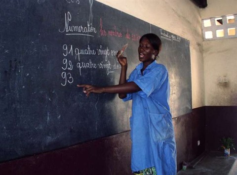 | Une institutrice dans une école à Brazzaville, en 2013 au Congo. |