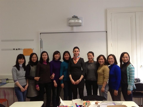 | Des stagiaires vietnamiennes dans un cours de perfectionnement de la langue française à Lyon. |