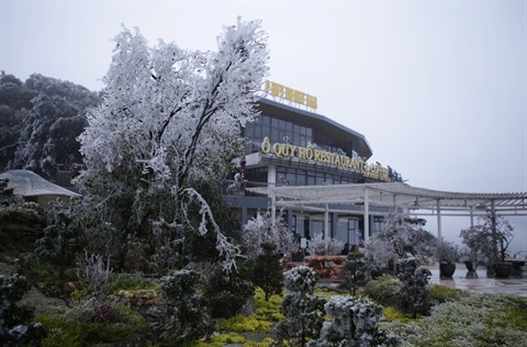 | Arbres couverts de givre sur le col d'Ô Quy Hô, dans la province de Lai Châu (Nord). |