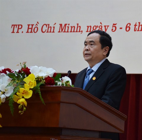 | Le président du Front de la Patrie du Vietnam (FPV), Trân Thanh Mân, prononce son discours lors de la 8e conférence du Comité central du FPV. |