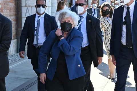 | Janet Yellen à son arrivée au G20 Finances à Venise le 9 juillet 2021. |