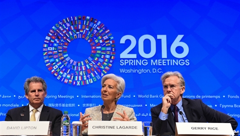 | La directrice générale du Fonds monétaire international, Christine Lagarde lors d’une conférence de presse, le 14 avril à Washington. |