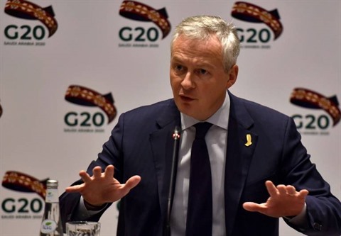 | Le ministre français de l'Économie et des Finances lors d'une conférence de presse en marge d'une réunion du G20 à Ryad, le 22 février. |