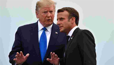 | Le président français Emmanuel Macron (droite) accueille son homologue américain Donald Trump pour un dîner avec les autres dirigeants du G7, le 24 août à Biarritz |