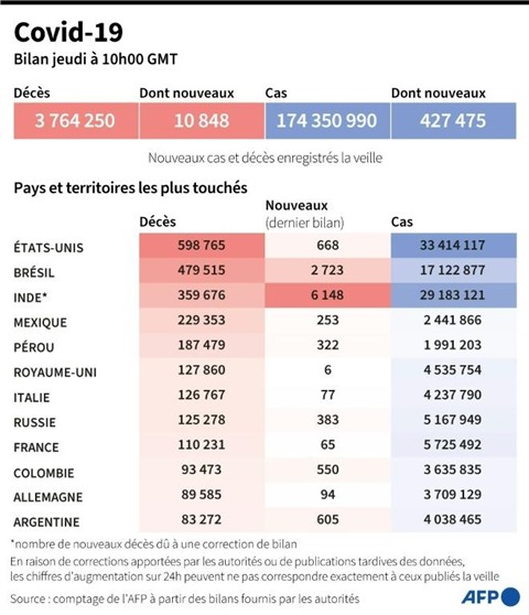 Avec près de 64% des adultes américains ayant désormais reçu au moins une dose, la Maison Blanche tente de se poser en leader dans la lutte planétaire contre la pandémie, qui a fait plus de 3,76 millions de morts, dont près de 600.000 aux États-Unis.