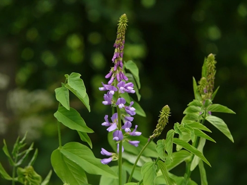 C’est une plante vivace, dressée, aromatique ; à tiges creuses, cannelées ; à feuilles pétiolées, composées de nombreuses folioles entières, lancéolées, terminées par un aiguillon ; à fleurs rappelant celles du haricot, en longues grappes terminales ; et à gousses brun-rouge.