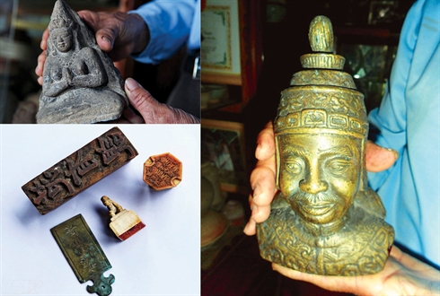 Dès sa jeunesse, M. Tuyên a consacré beaucoup de temps et d’efforts pour rechercher des objets anciens sur l’île de Ly Son. Quarante ans plus tard, inutile de trop longtemps s’étonner d’une collection de plusieurs milliers de pièces de toutes périodes et de toutes sortes : dont de raren sac phong (décrets royaux) et ân tin (sceau officiel)...