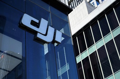 | Le logo du chinois DJI, leader mondial des drones grand public, sur un magasin à Pékin. |