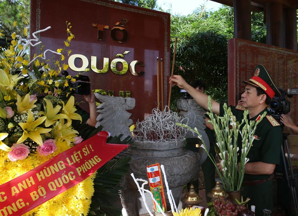 | Le général Phan Van Giang a offert des baguettes d'encens pour rendre hommage à 1.383 soldats morts de la Division 365 durant les résistances pour la libération nationale. |