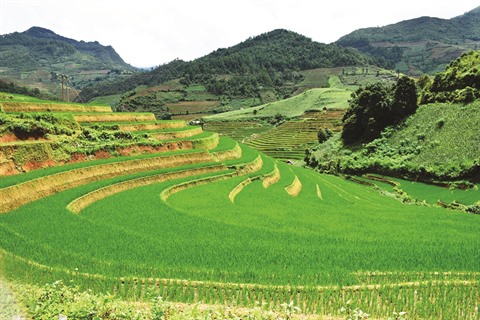 | Des rizières en terrasses dans la région Nord-Ouest sont prêtes à la récolte. |