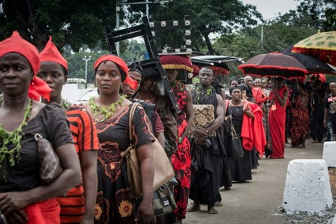 | Les Ghanéens rendent hommage à l'ancien secrétaire général de l'ONU, Kofi Annan, à Accra le 12 septembre. |