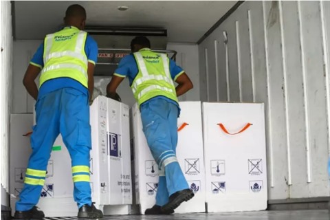 | Les premières doses du vaccin AstraZeneca du programme mondial Covax sont arrivées le 24 février au Ghana. |