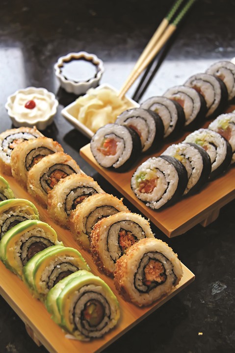 - Sur un plan de travail, mettre la feuille d’algue puis étaler le riz sur toute sa surface. Placer le saumon fumé, les tranches de carotte et de concombre. Rouler l’algue pour obtenir un rouleau. Laisser de côté.
