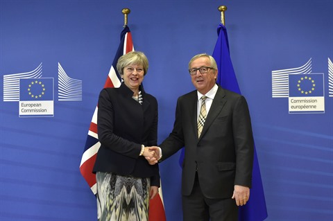 | La Première ministre britannique Theresa May et le président de la Commission européenne, Jean-Claude Juncker, le 4 décembre 2017, à Bruxelles. |