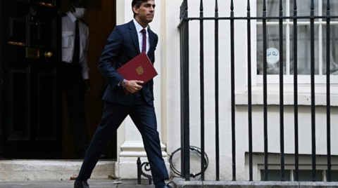 | Rishi Sunak, ministre britannique des Finances, quitte Downing Street à Londres, le 24 septembre. |