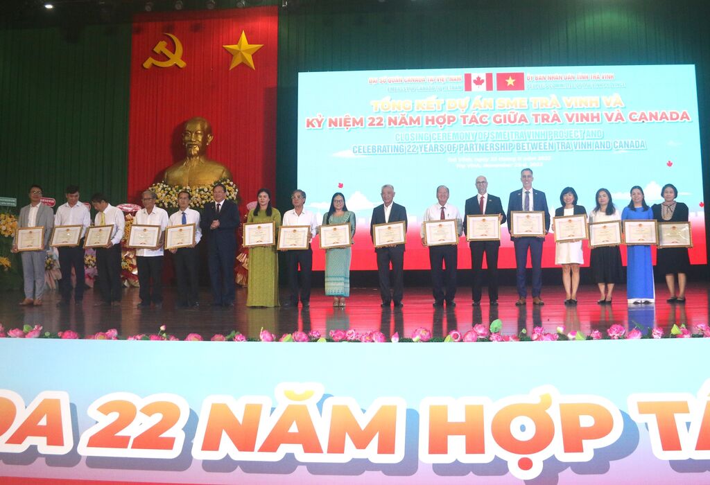 À cette occasion, le Comité populaire provincial et l'ambassade du Canada au Vietnam ont remis des satisfécits à des collectifs et particuliers ayant eu des contributions importantes à la mise en œuvre du projet de développement des PME de Trà Vinh.