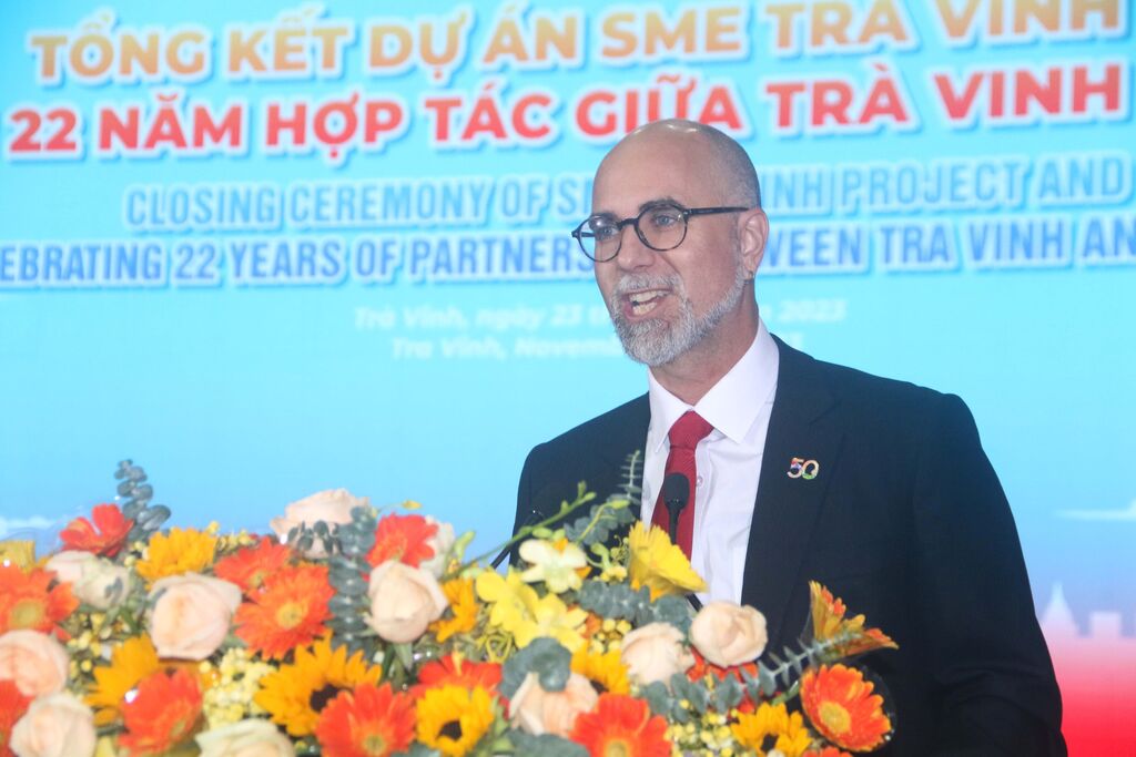 | L'ambassadeur du Canada au Vietnam, Shawn Steil, s'exprime à Trà Vinh, le 23 novembre. |