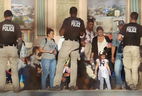| Des migrants après leur arrestation à la frontière sud des États-Unis en juin. |