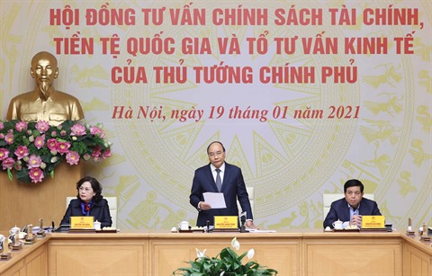 | Le Premier Nguyên Xuân Phuc a eu le 19 janvier à Hanoï une séance de travail avec le Conseil consultatif national de politique monétaire et financière et le Groupe consultatif économique. |