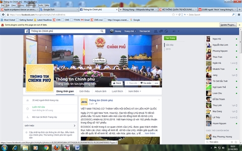 Le directeur général du portail électronique du gouvernement (chinhphu.vn), Vi Quang Dao, vient d’annoncer que depuis le 1er octobre, la page "Information du gouvernement" est accessible sur Facebook.