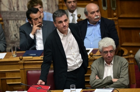 | Le ministre grec des Finances, Euclid Tsakalotos, lors d'une session du Parlement, le 23 juillet 2015 à Athènes |