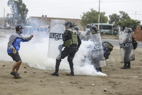 | Affrontements entre travailleurs agricoles et policiers à Viru, dans le Nord du Pérou, le 30 décembre 2020. |