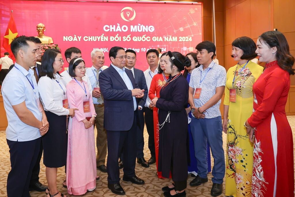| Le Premier ministre Pham Minh Chinh (centre) discute avec des participants à la célébration de la Journée nationale de la transformation numérique 2024. |